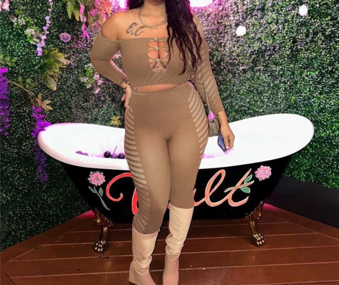(Brown)2023 Styles Women Sexy&Fashion Autumn/Winter TikTok&Instagram Styles Lace Two Piece SuitSKU: #TP113-2