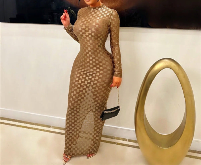 (Brown)2023 Styles Women Sexy&Fashion Autumn/Winter TikTok&Instagram Styles Long Sleeve Maxi DressSKU: #CF83263-3