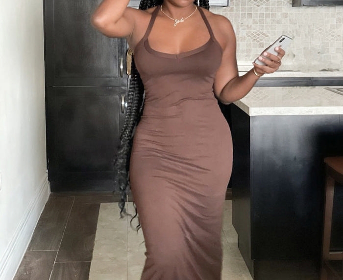 (Brown)2023 Styles Women Sexy&Fashion Spring&Summer TikTok&Instagram Styles Strap Maxi DressSKU: #CF68269-2