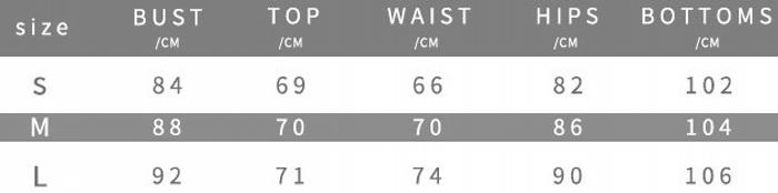 | Size | Bust | Waist | Hips |