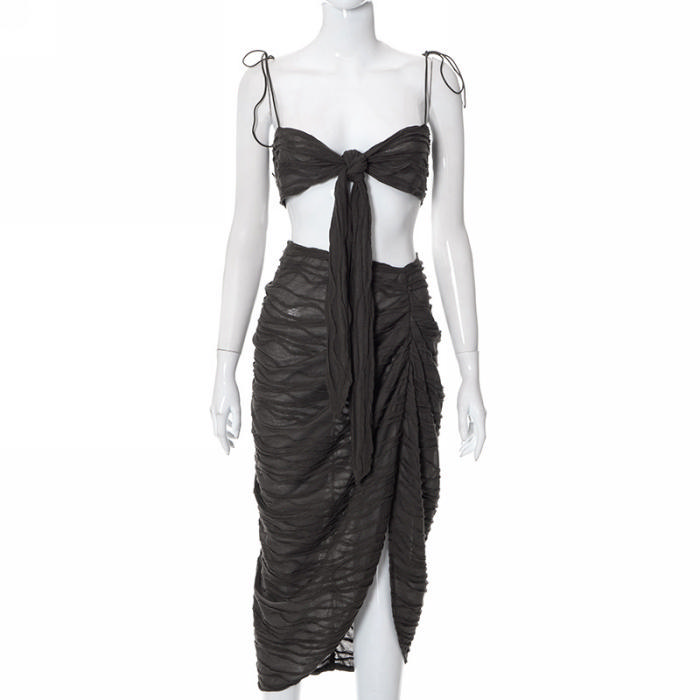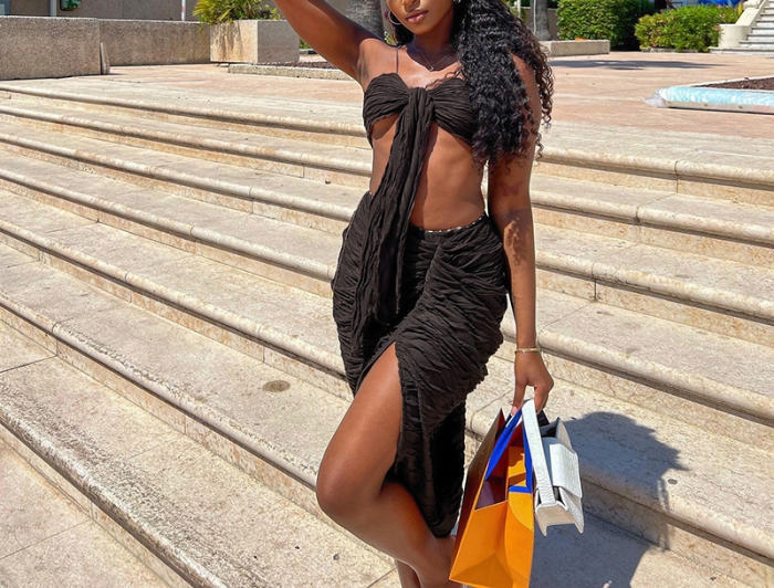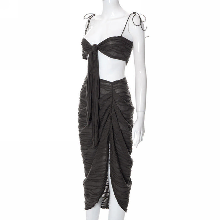 (Brown)(Real Image)2022 Styles Women Fashion INS Styles Ruffle Two Piece Maxi DressSKU: #CF68069-1