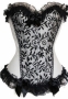 Bule Lace Up Print Front Flower Satin OverBust CORSETSKU: #QX1046-3