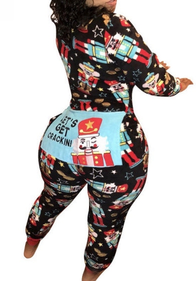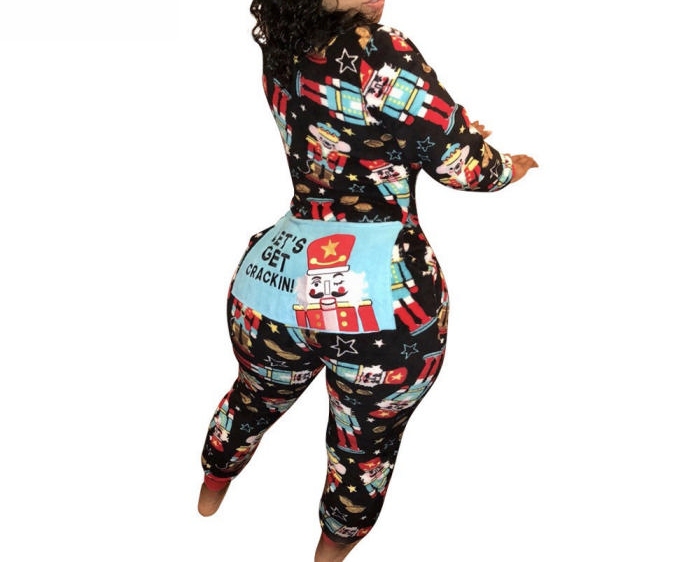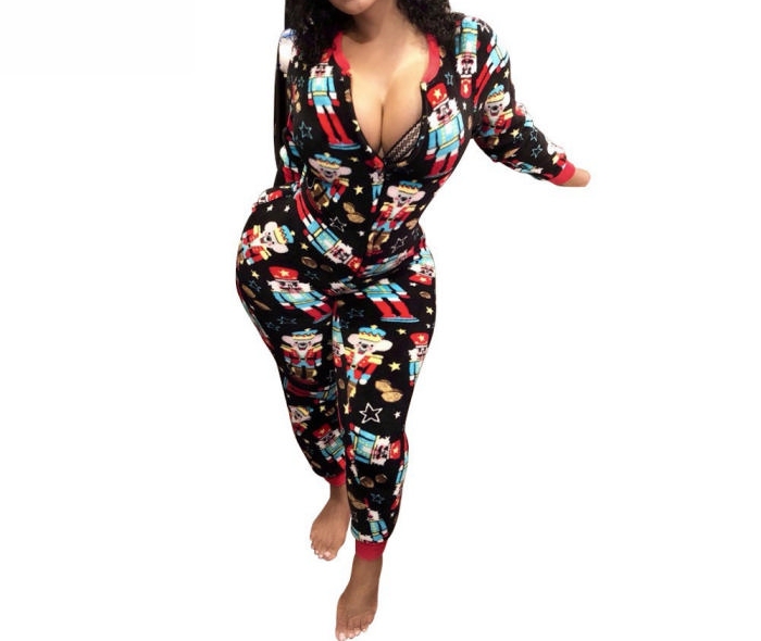 (Christmas Jumpsuit)(Black)2023 Styles Women Sexy&Fashion Autumn/Winter TikTok&Instagram Styles Print JumpsuitSKU: #OU2866-2