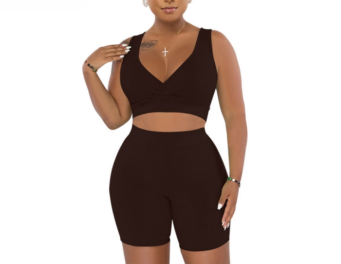 (Coffee)2022 Styles Women Sexy Spring&Winter TikTok&Instagram Styles Short Two Piece SuitSKU: #CF82020-8