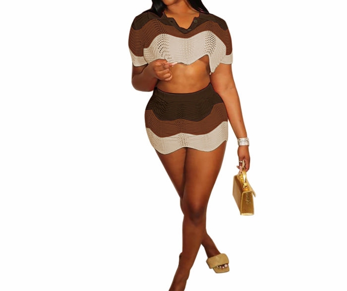 (Coffee)2023 Styles Women Sexy&Fashion Autumn/Winter TikTok&Instagram Styles Contrast Color Sweater Two Piece DressSKU: #OU2835-5