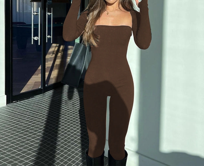 (Coffee)2023 Styles Women Sexy&Fashion Autumn/Winter TikTok&Instagram Styles Solid Color Long Sleeve JumpsuitSKU: #CF88178-3