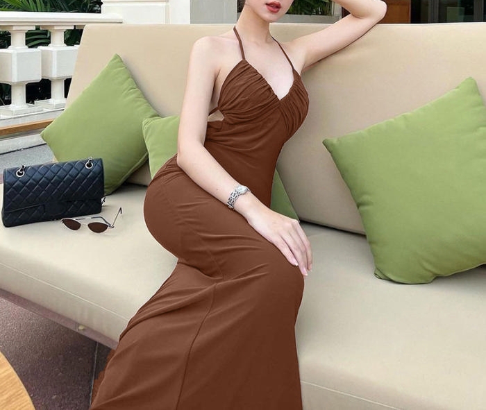 (Coffee)2023 Styles Women Sexy&Fashion Spring&Summer TikTok&Instagram Styles Backless Maxi DressSKU: #CF22903-3