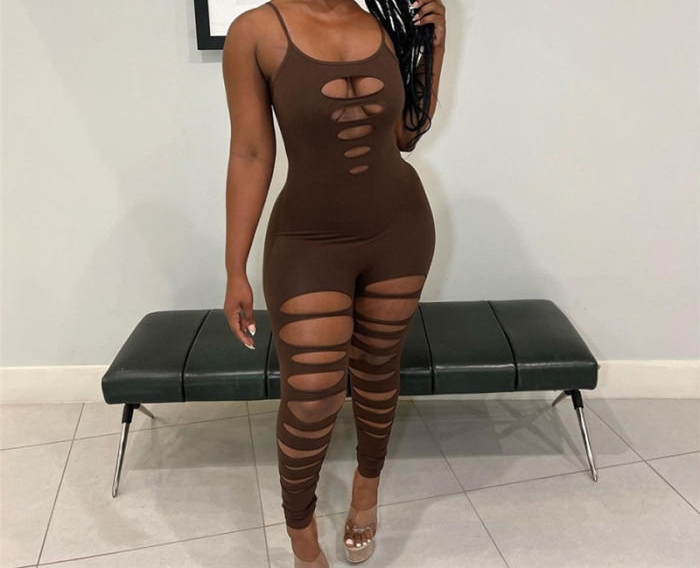 (Coffee)2023 Styles Women Sexy&Fashion Spring&Summer TikTok&Instagram Styles Ripped JumpsuitSKU: #CF77357-2
