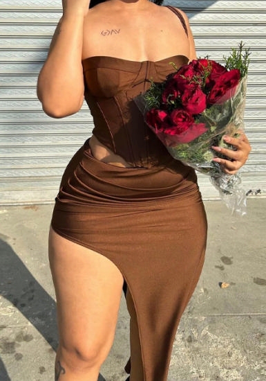 (Coffee)2023 Styles Women Sexy&Fashion Spring&Summer TikTok&Instagram Styles Strap Corset Maxi DressSKU: #CF88002-3
