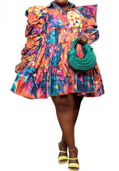 (Colorful)(Plus Size)2023 Styles Women Sexy&Fashion Spring&Summer TikTok&Instagram Styles Print Shirts DressSKU: #CF85002-5
