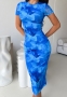 (Dark Blue)2024 Styles Women Multicolor Floral Print Strapless Slimming Short-Sleeved Maxi DressSKU: #CF92108-4
