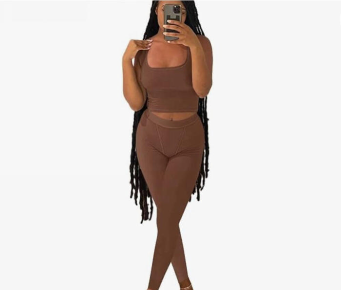 (Dark Brown)2023 Styles Women Sexy&Fashion Autumn/Winter TikTok&Instagram Styles Solid Color Two Piece SuitSKU: #OU2840-8