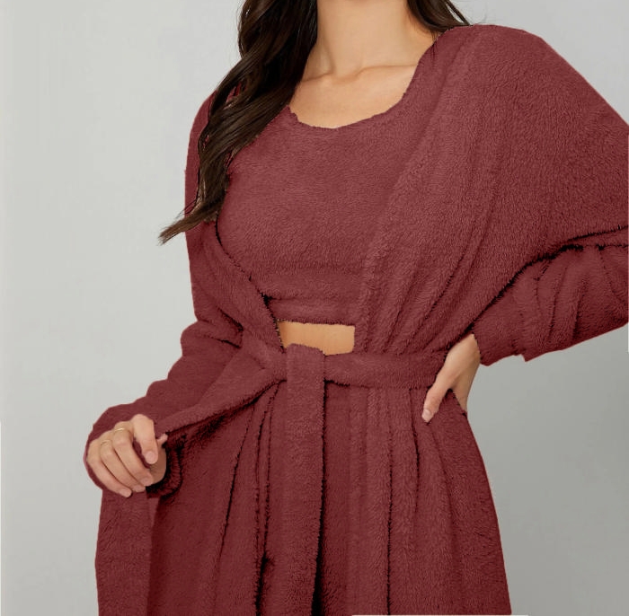 (Dark Red)(Tops+Coats+Long Pants)2024 Styles Women Sexy&Fashion Sprint/Summer TikTok&Instagram Loungwear Three Piece SetsSKU: #CH96001-6
