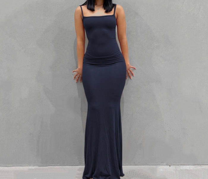 (Drak Blue)2023 Styles Women Sexy&Fashion Autumn/Winter TikTok&Instagram Styles Solid Color Maxi DressSKU: #OU2837-13