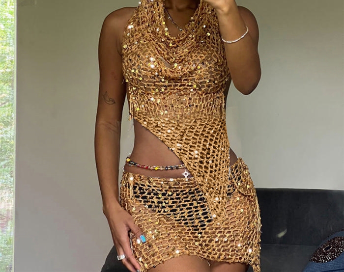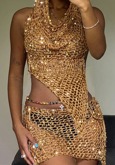 (Golden)2023 Styles Women Sexy&Fashion Spring&Summer TikTok&Instagram Styles Sweater Backless Hoodie Two Piece DressSKU: #CF77417-2