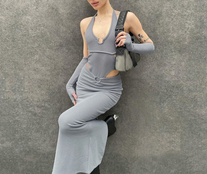 (Gray)2022 Styles Women Fashion Summer TikTok&Instagram Styles Cut Out Maxi DressSKU: #CF22733-2