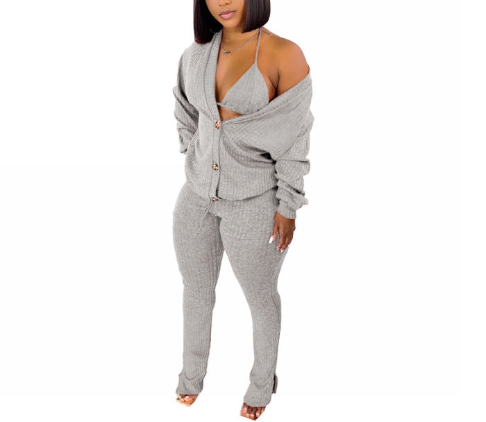 (Gray)2022 Styles Women Fashion Summer TikTok&Instagram Styles Sweater 3 Piece SuitSKU: #OU0138-10