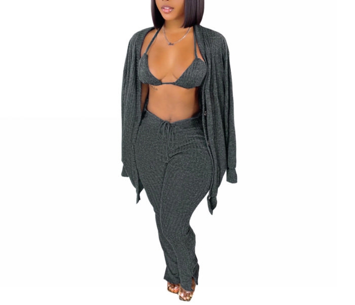 (Gray)2022 Styles Women Fashion Summer TikTok&Instagram Styles Sweater 3 Piece SuitSKU: #OU0138-7