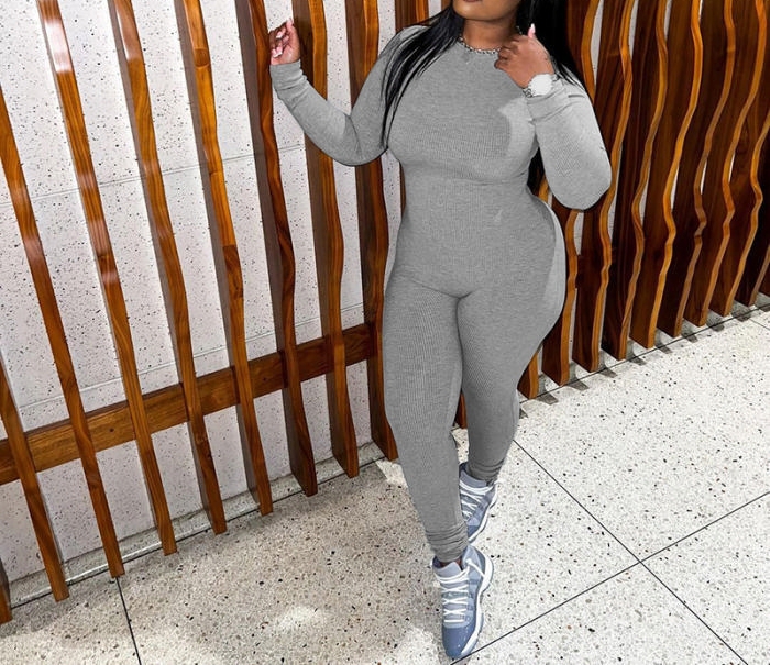 (Gray)2023 Styles Women Sexy&Fashion Autumn/Winter TikTok&Instagram Styles Long Sleeve JumpsuitSKU: #CF77652-2