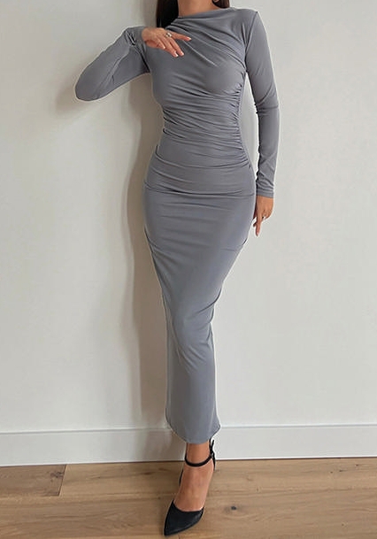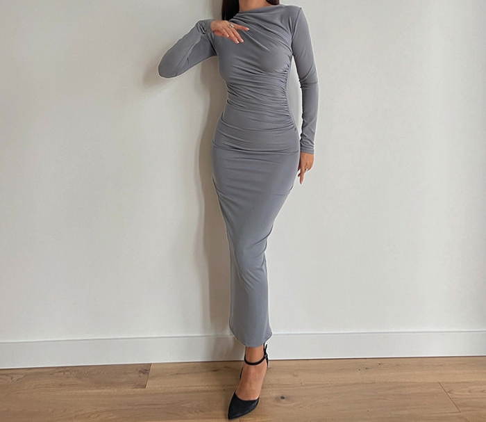 (Gray)2023 Styles Women Sexy&Fashion Autumn/Winter TikTok&Instagram Styles Long Sleeve Maxi DressSKU: #CF88176-3