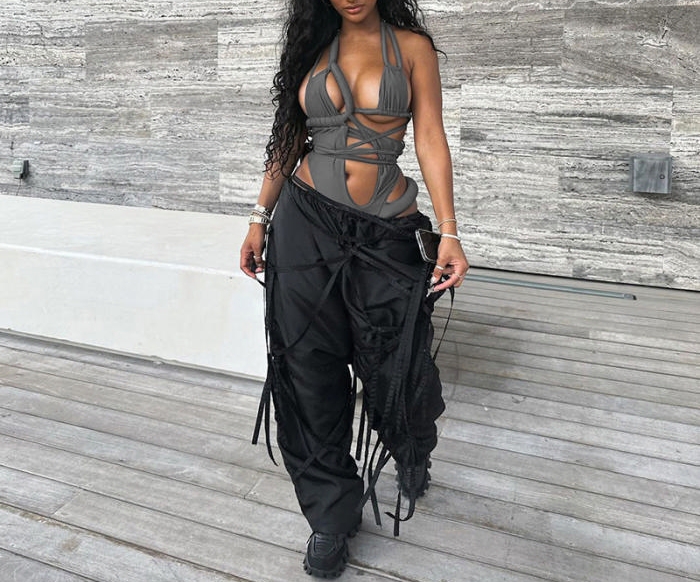 (Gray)2023 Styles Women Sexy&Fashion Spring&Summer TikTok&Instagram Styles Bandage BodysuitSKU: #CF77217-2