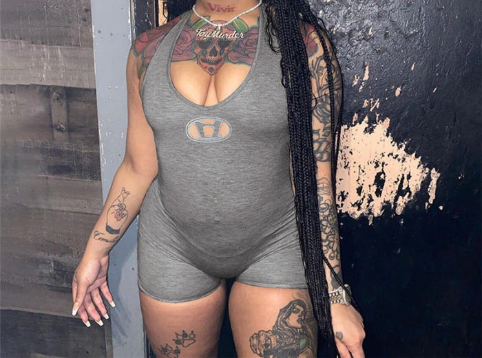 (Gray)2023 Styles Women Sexy&Fashion Spring&Summer TikTok&Instagram Styles Cut Out RomperSKU: #CF77333-2