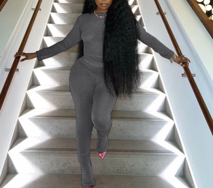 (Gray)2023 Styles Women Sexy&Fashion Spring&Summer TikTok&Instagram Styles Long Sleeve Two Piece SuitSKU: #CF77190-3