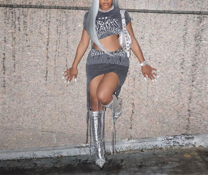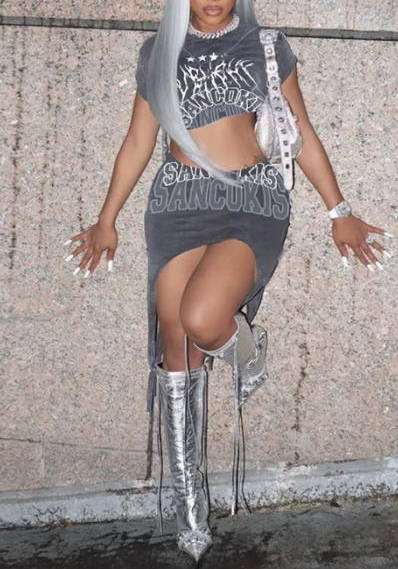 (Gray)2023 Styles Women Sexy&Fashion Spring&Summer TikTok&Instagram Styles Print Two Piece DressSKU: #CF77166-1
