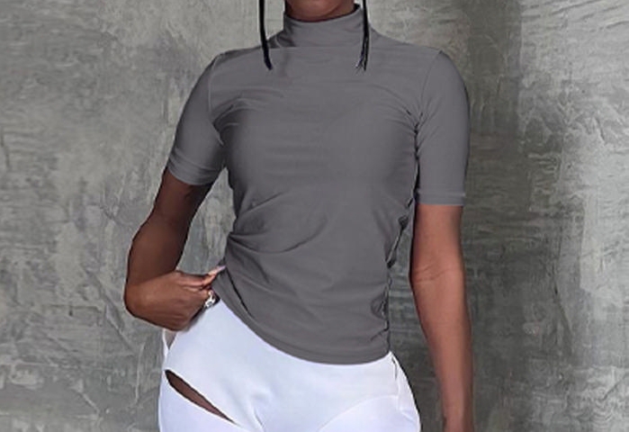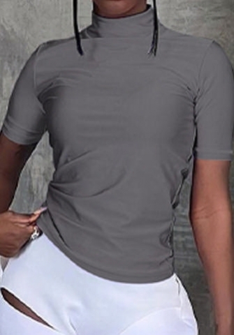 (Gray)2023 Styles Women Sexy&Fashion Spring&Summer TikTok&Instagram Styles Solid Color Short Sleeve TeeSKU: #CF88007-2