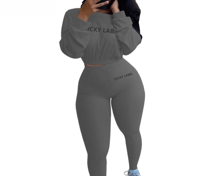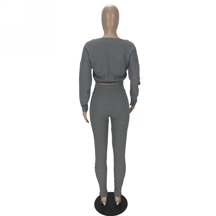(Gray)2023 Styles Women Sexy&Fashion Spring&Summer TikTok&Instagram Styles Solid Color Two Piece SuitSKU: #OU243-11