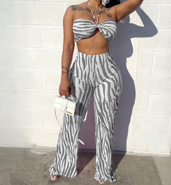 (Gray)2023 Styles Women Sexy&Fashion Spring&Summer TikTok&Instagram Styles Striped Two Piece SuitSKU: #OM484-1