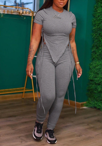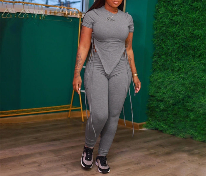 (Gray)2023 Styles Women Sexy&Fashion Spring&Summer TikTok&Instagram Styles Tassel Two Piece SuitSKU: #CF77203-2