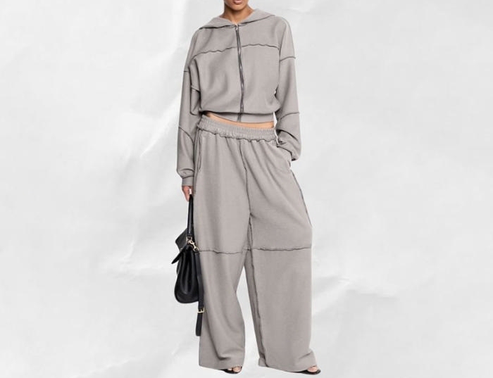(Gray)2024 Styles Women Autumn/Winter Hooded Long Sleeve Zip-Up Jacket & Relaxed Pants Casual SetSKU: #CF77860-2