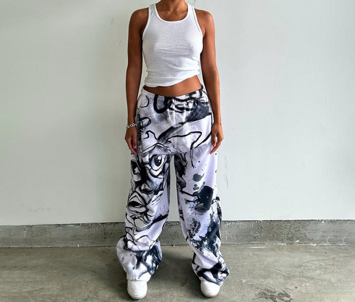 (Gray,Only Bottom)2023 Styles Women Sexy&Fashion Autumn/Winter TikTok&Instagram Styles Print Loose Long PantsSKU: #CF47795-3