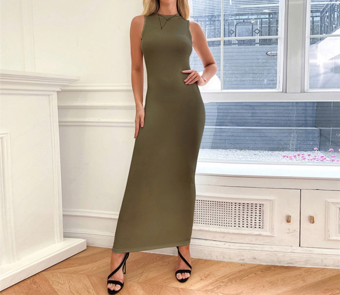 (Green)2022 Styles Women Fashion Instagram Styles Sleeveless Solid Color Maxi DressSKU: #CF48767-2