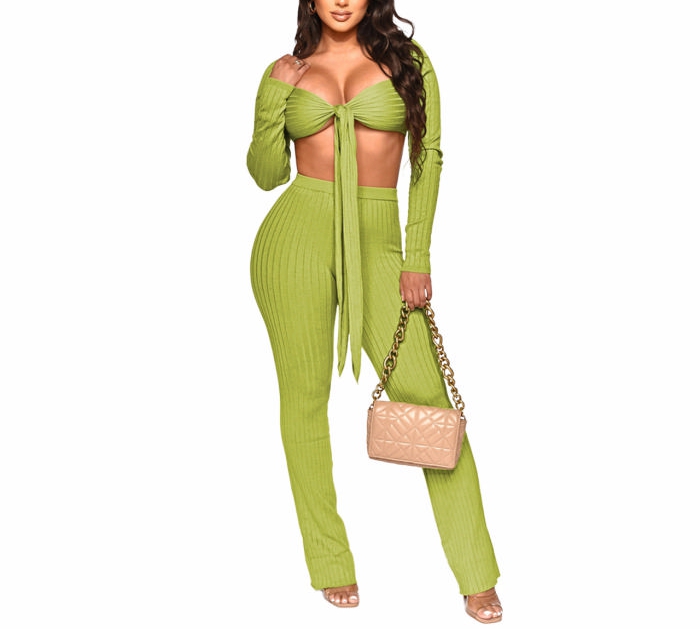 (Green)2022 Styles Women Fashion Spring&Winter TikTok&Instagram Styles Bra+Long Pants Two Piece SuitSKU: #XF82073-1