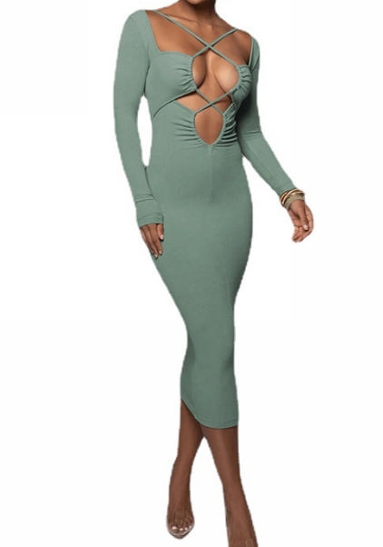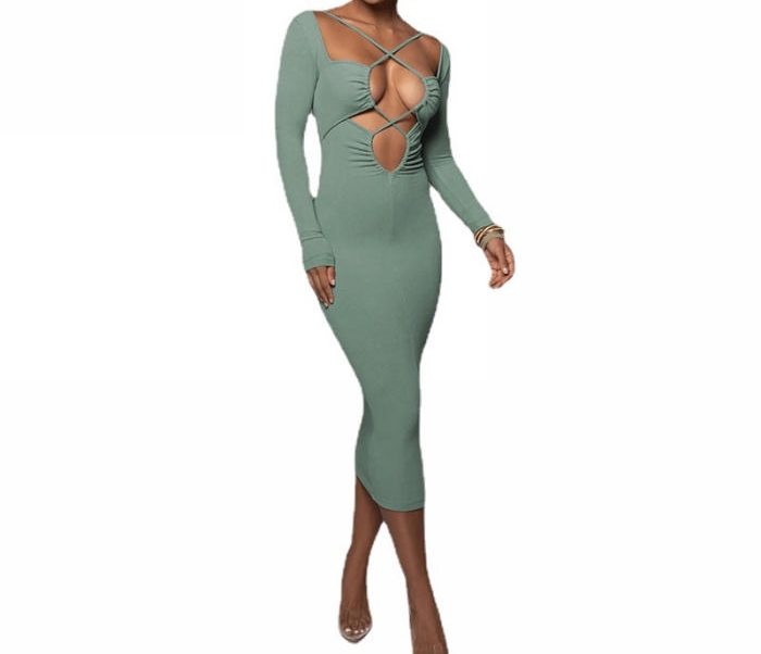 (Green)2022 Styles Women Fashion Spring&Winter TikTok&Instagram Styles Long Sleeve Lace Up Maxi DressSKU: #XF62581-3