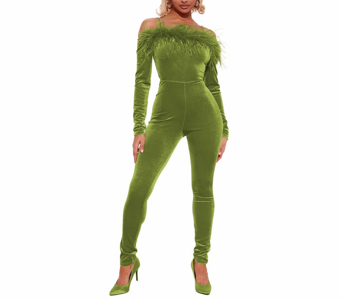 (Green)2022 Styles Women Fashion Spring&Winter TikTok&Instagram Styles Off Shoulder Tassel JumpsuitSKU: #XF82079-1