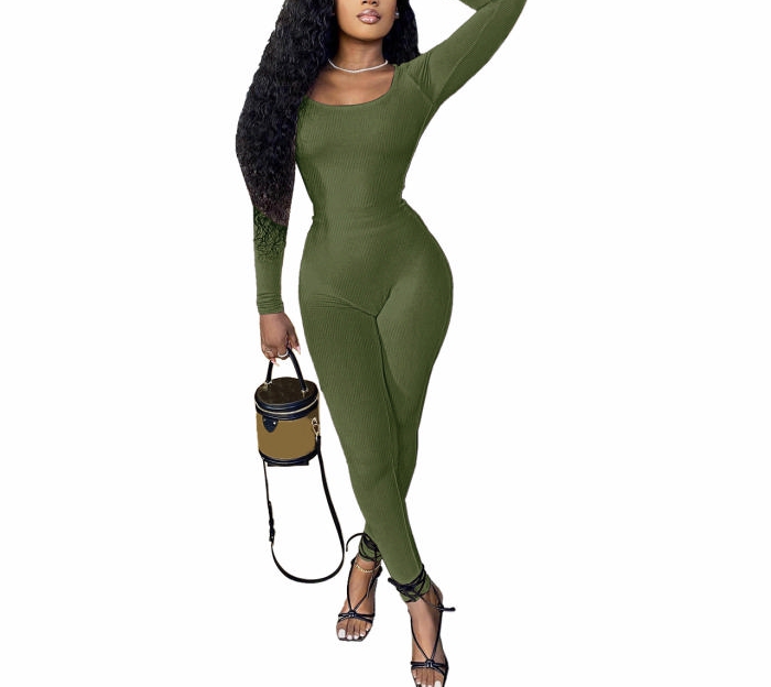 (Green)2022 Styles Women Fashion Spring&Winter TikTok&Instagram Styles Solid Color Long Sleeve JumpsuitSKU: #XF82082-5