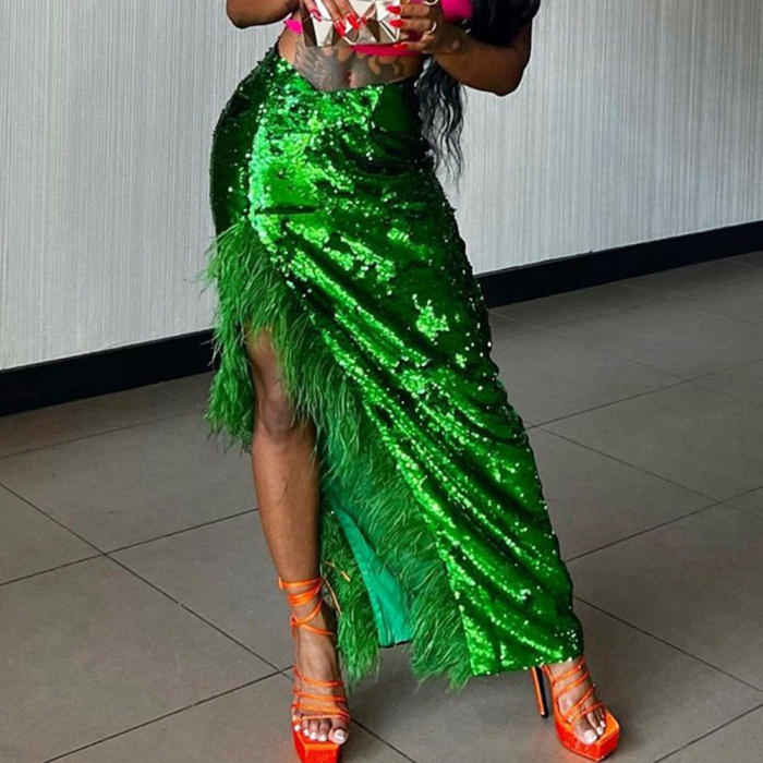 (Green)2022 Styles Women Fashion Summer TikTok&Instagram Styles Green Sequin SkirtsSKU: #CF59264-1