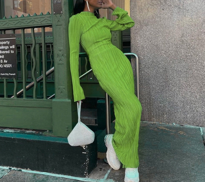 (Green)2022 Styles Women Fashion Summer TikTok&Instagram Styles Long Sleeve Maxi DressSKU: #CF22796-3
