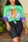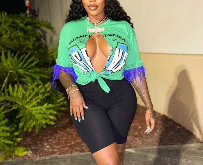 (Green)2022 Styles Women Fashion Summer TikTok&Instagram Styles Open Print Tassel TeeSKU: #CF47146-2