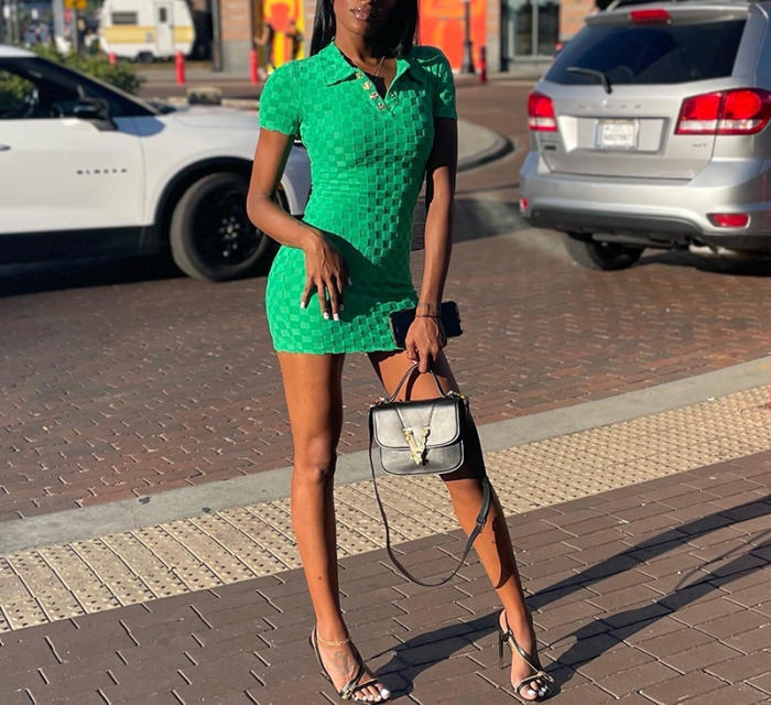 (Green)2022 Styles Women Fashion Summer TikTok&Instagram Styles Plaid Short Sleeve Mini DressSKU: #CF47164-2
