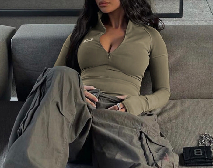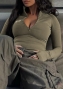 (Green)2022 Styles Women Sexy Spring&Winter TikTok&Instagram Styles Front Zipper Long Sleeve ShirtsSKU: #CF81015-3