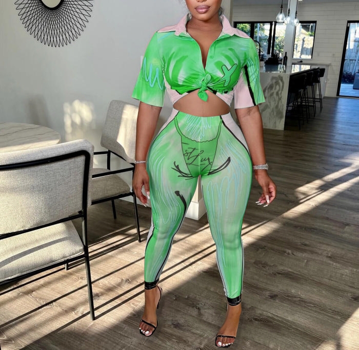(Green)2022 Styles Women Sexy Spring&Winter TikTok&Instagram Styles Print Two Piece SuitSKU: #TP004-2