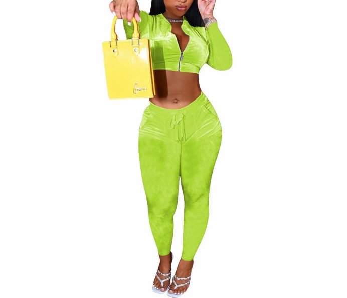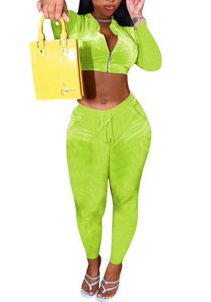 (Green)2022 Styles Women Sexy Spring&Winter TikTok&Instagram Styles Velvet Two Piece SuitSKU: #TP015-5