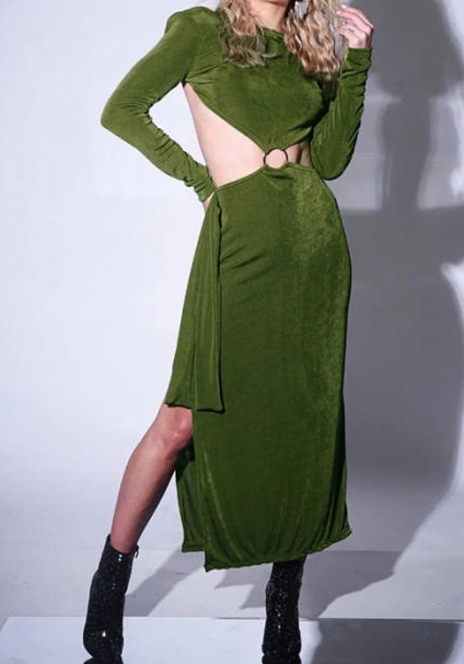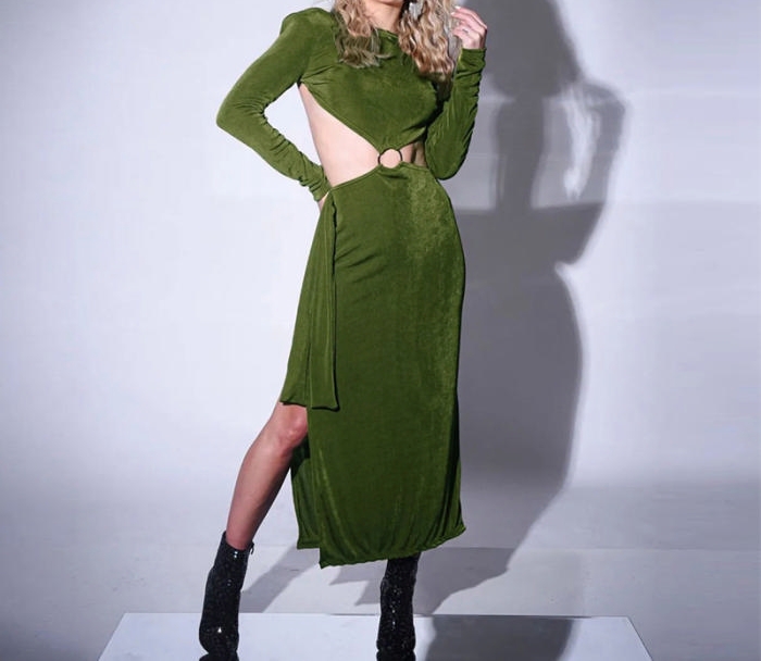 (Green)2023 Styles Women Sexy&Fashion Autumn/Winter TikTok&Instagram Styles Cut Out Long Sleeve Maxi DressSKU: #CF88145-3