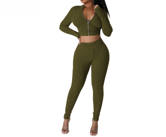 (Green)2023 Styles Women Sexy&Fashion Autumn/Winter TikTok&Instagram Styles Front Zipper Two Piece SuitSKU: #OEM6001-3