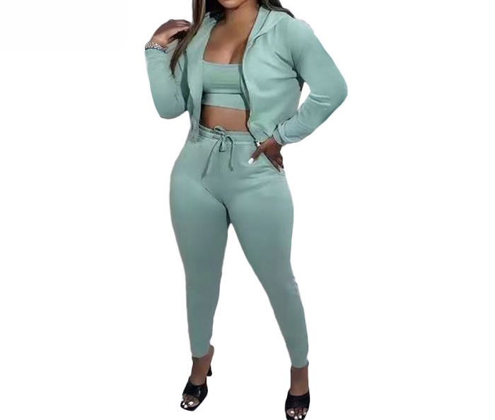 (Green)2023 Styles Women Sexy&Fashion Autumn/Winter TikTok&Instagram Styles Hoodie Three Piece SuitSKU: #OEM6002-11