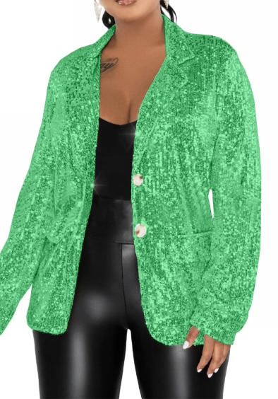 (Green)2023 Styles Women Sexy&Fashion Autumn/Winter TikTok&Instagram Styles Sequins Open CoatSKU: #OEM5995-3